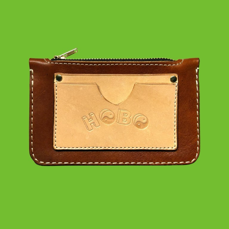 Brown Zipper wallet with HOBO Patch. Main zip pocket plus 2 slot card pockets.