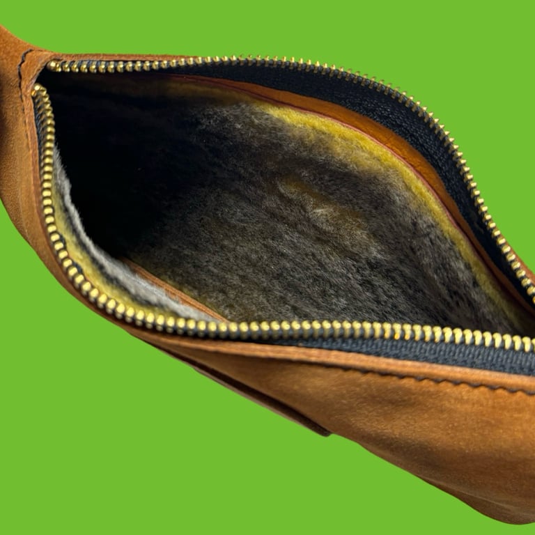 Brown Suede DEATH Snubby Sack. Furry Interior for protection.