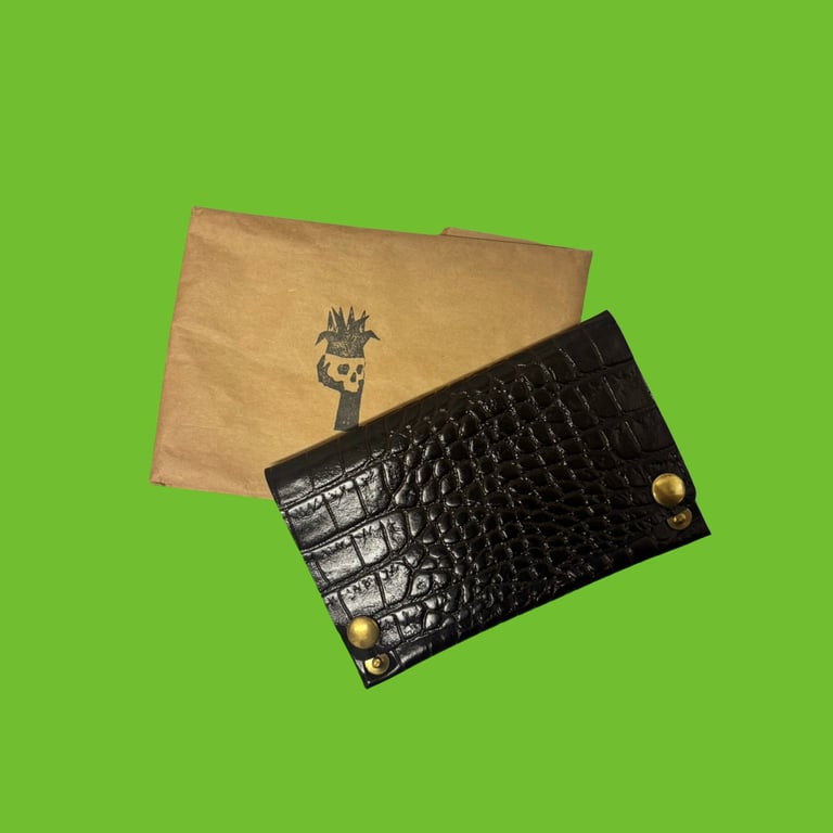 2021 Gator Embossed Leather rivet wallet collab with Classic McQueen