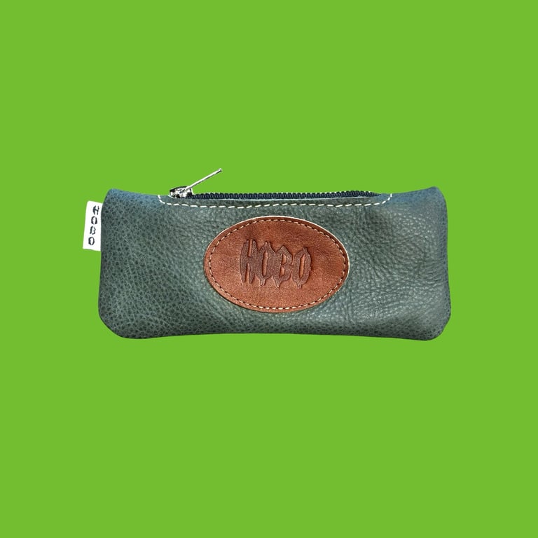 Rustic leather HOBO Patch on green MINI Sack